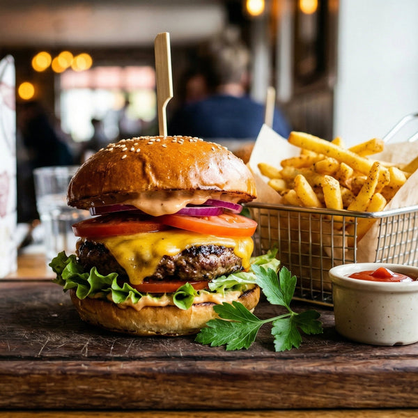 Burger + friikad